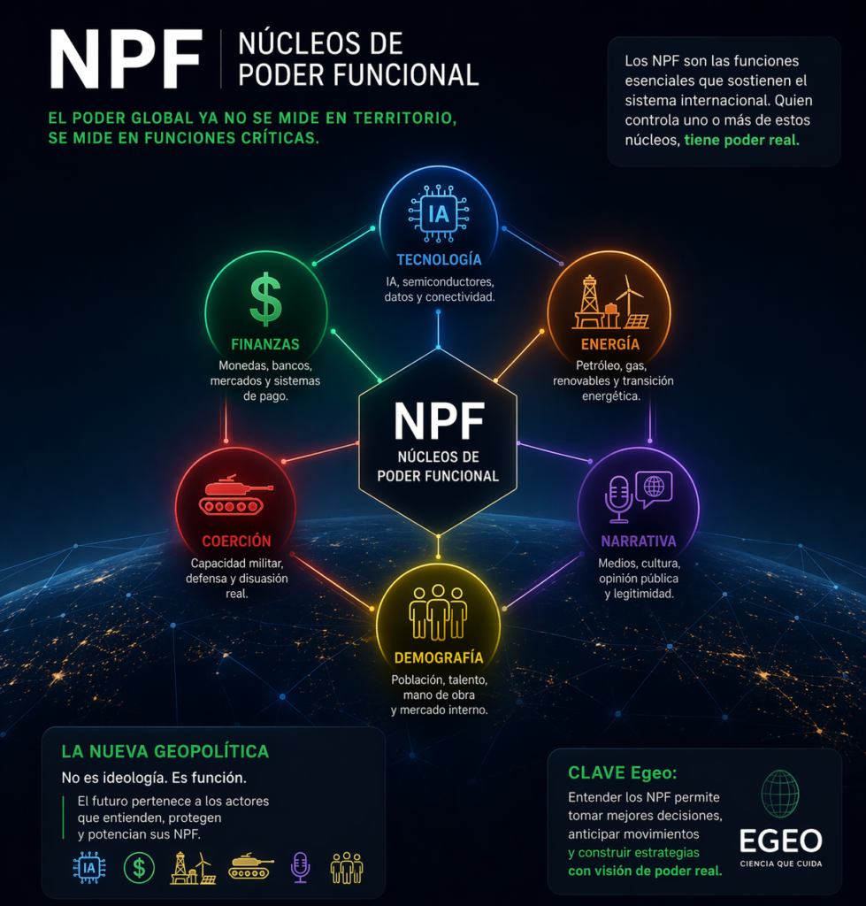 Sin embargo, la filtración —verificada por “Defense One” y “Politico”— instaló el debate sobre una posible reconfiguración estructural del orden internacional. Desde el marco analítico de los “Núcleos de Poder Funcional (NPF)”, desarrollado por EGEO, la propuesta del C5 no resulta sorprendente. Al contrario: constituye una expresión institucional de una lógica de poder que ya opera en la práctica.
